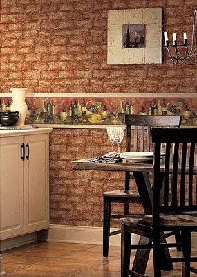 Get wallpapers for the kitchen in different colors, patterns, textures, sizes, and food item prints. Ask for paper, vinyl, grasscloth, flock, and bamboo materials. Plus, the dirt, stain, & wear-resistant coatings.